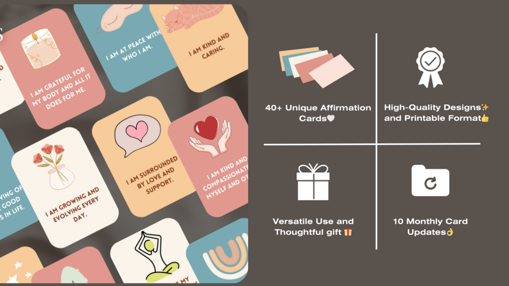 - Monthly Card Updates: Subscribe to receive a new set of 10 affirmation cards each month, ensuring a fresh and continuous source of positivity.
